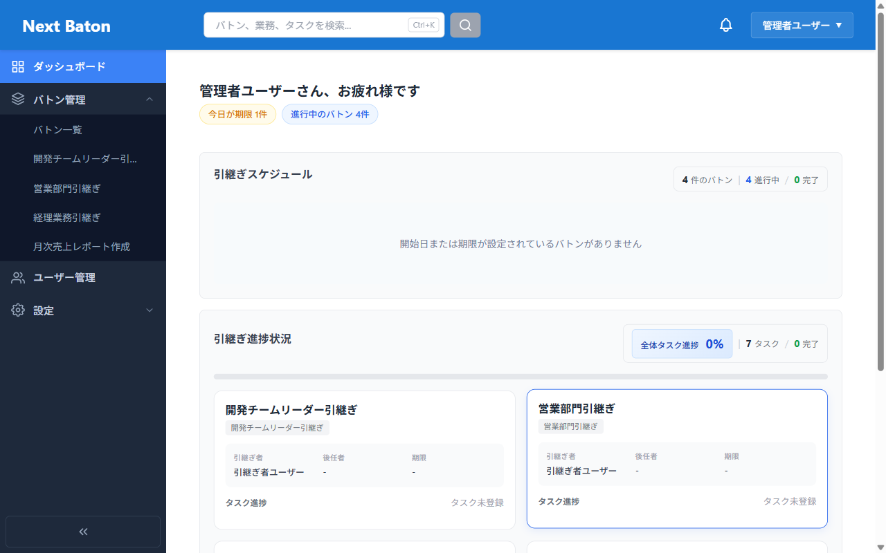 Next Batonは、業務の引継ぎを構造化し、 チーム全体で品質を担保できる仕組みを提供します。